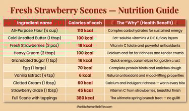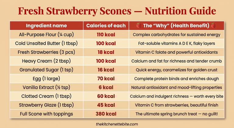 Strawberry Cream Cheese Scones: Add 2 oz cold cream cheese cubed alongside the butter — the cream cheese creates an even more tender rich crumb and subtle tang.